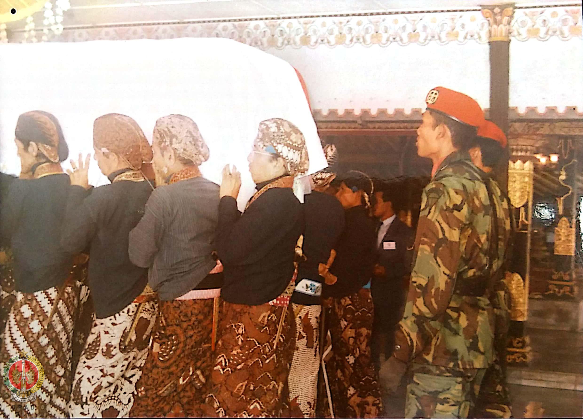 Abdi dalem mengangkat jenasah Sri Sultan HB IX memasuki Bangsal Kencana