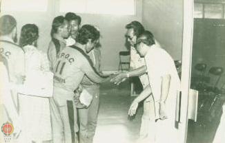 Bapak Kepala Dinas Sosial menyalami seorang atlet yang dikirim ke POR YPOC