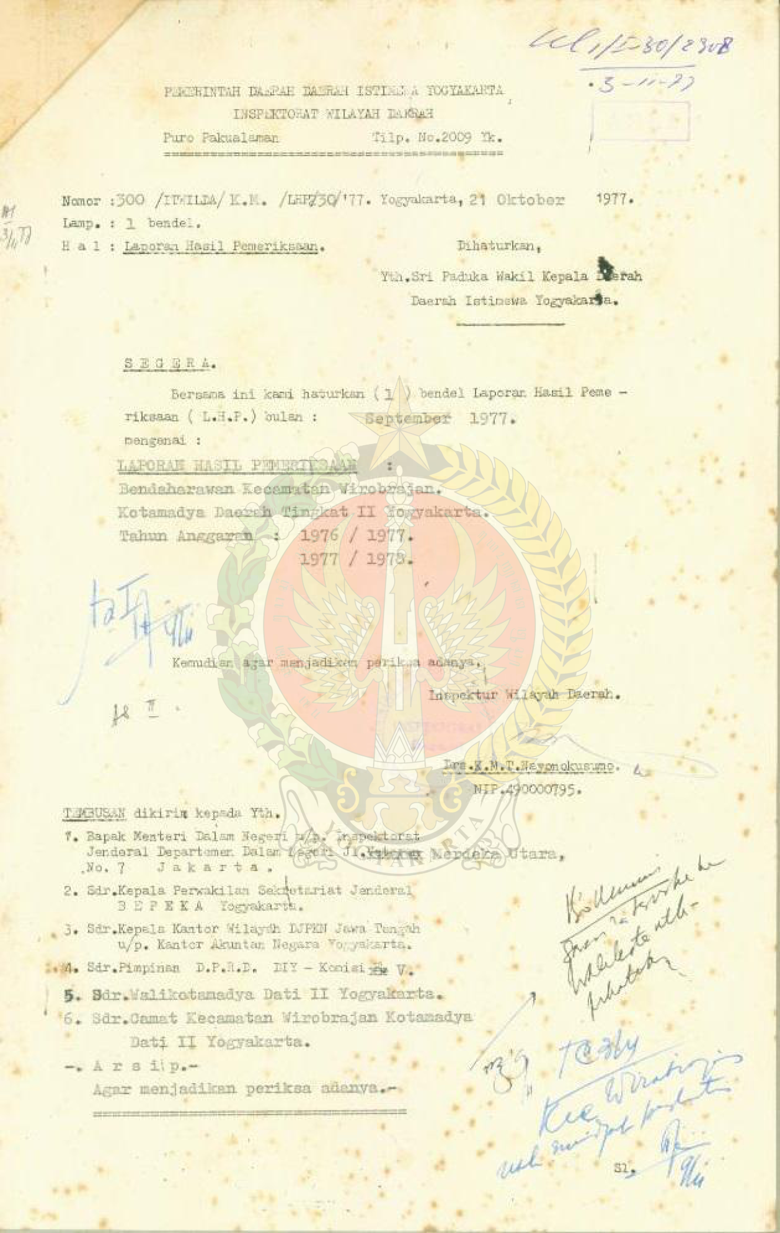 Laporan hasil pemeriksaan Kec. Wirobrajan Kotamadya YK.