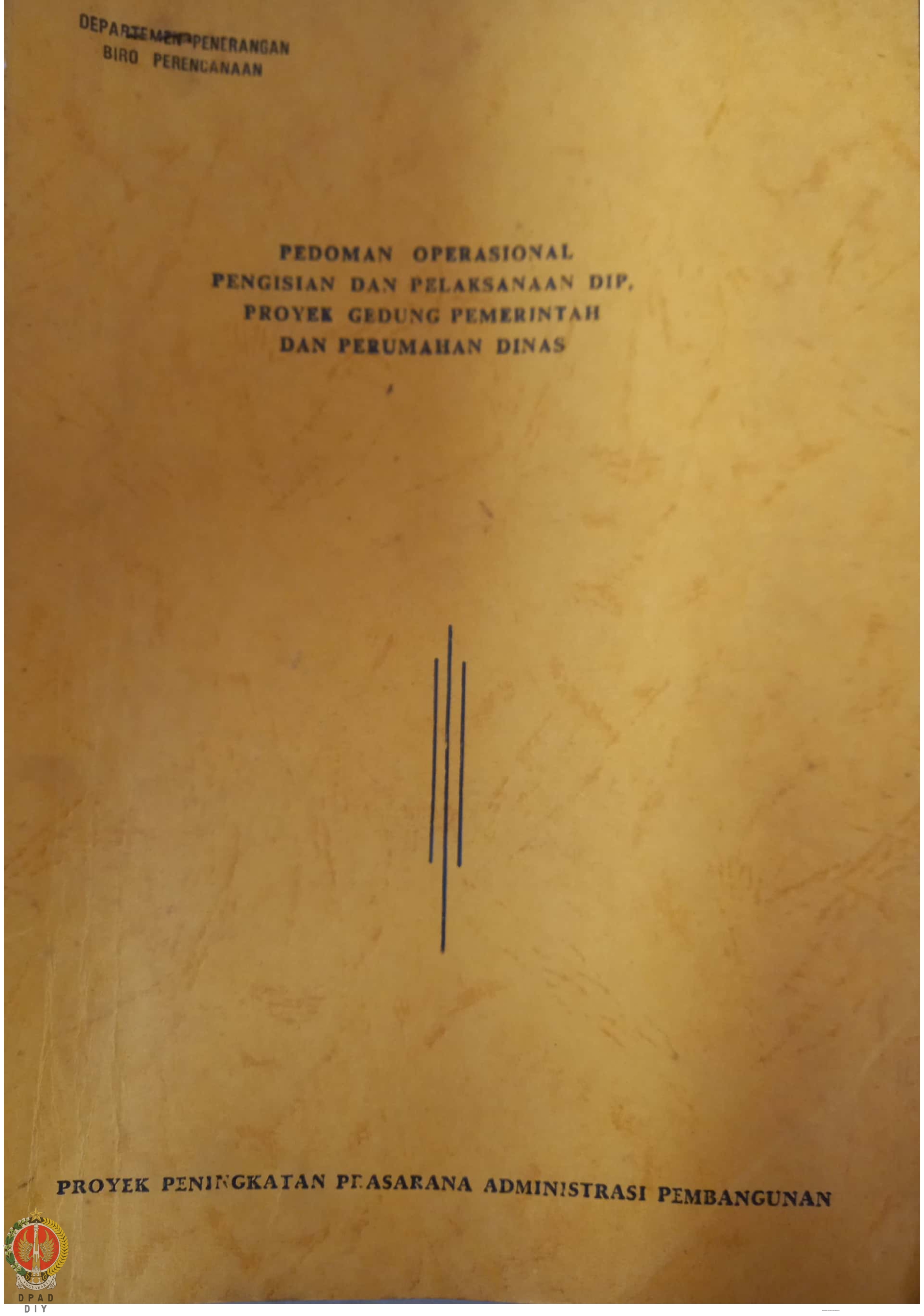 Buku Pedoman Operasional Pengisian dan Pelaksanaan DIP, Proyek Gedung Pemerintah dan Perumahan Dinas, Proyek Peningkatan Prasarana Administrasi Pembangunan Biro Perencanaan Departemen Penerangan.