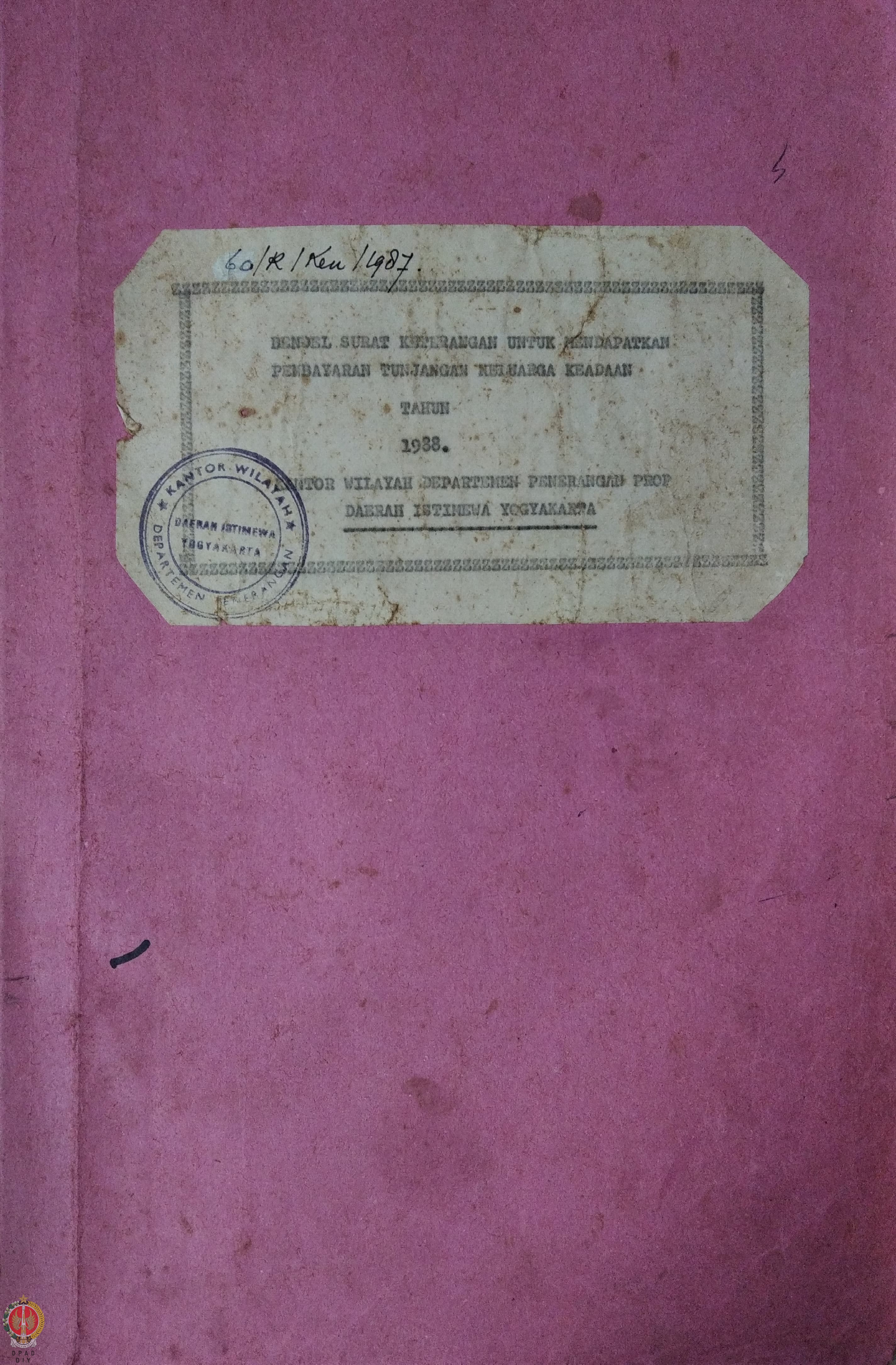 Buku โBendel Surat Keterangan untuk mendapatkan Pembayaran Tunjangan Keluarga Keadaan Tahun 1985 Kantor Wilayah Departemen Penerangan Provinsi Daerah Istimewa Yogyakartaโ a.n. Soedarjanto dkk.