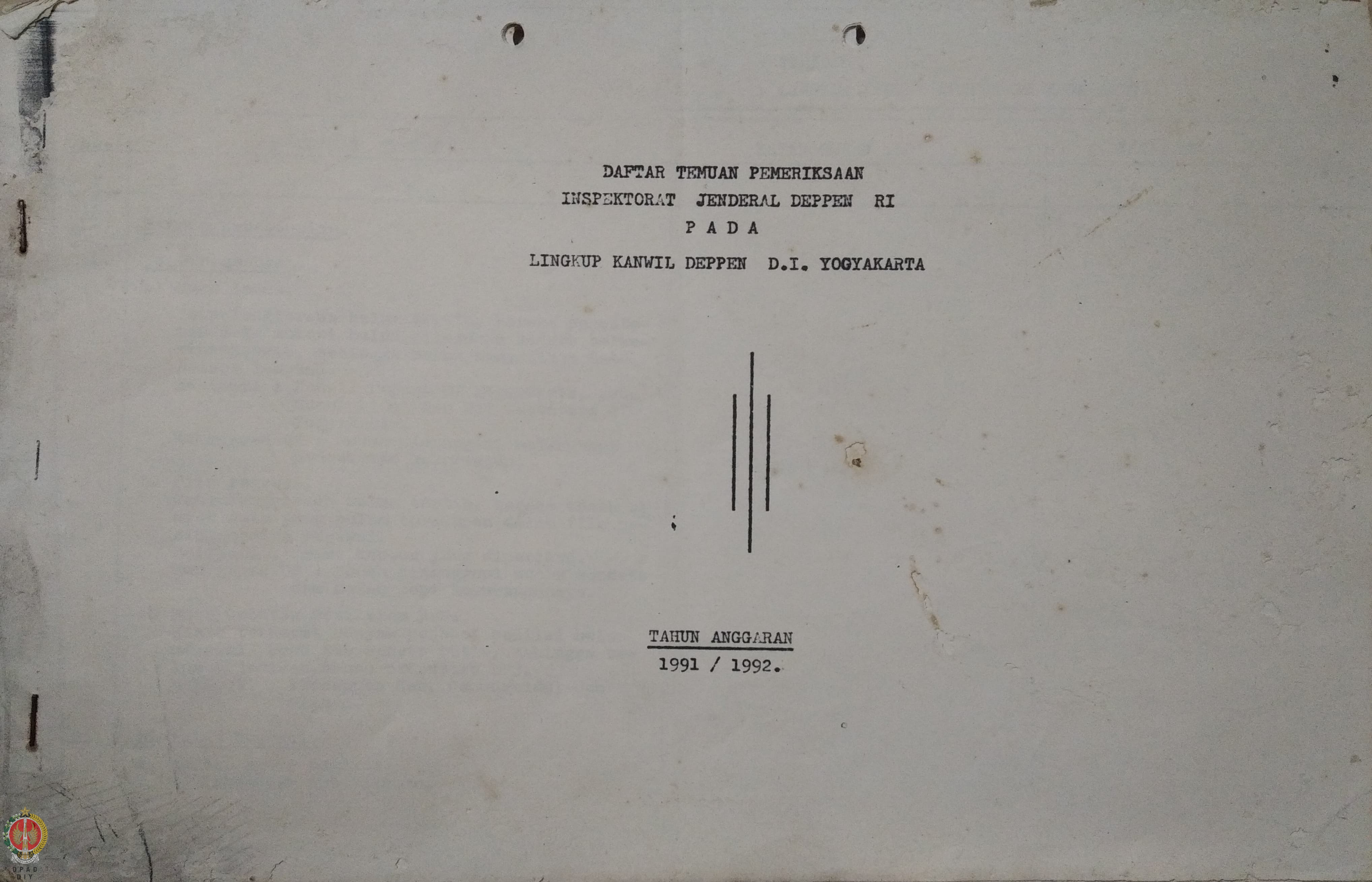 Daftar Temuan Pemeriksaan Inspektorat Jenderal Departemen Penerangan Republik Indonesia pada Lingkup Kantor Wilayah Departemen Penerangan Daerah Istimewa Yogyakarta Tahun Anggaran 1991/1992.