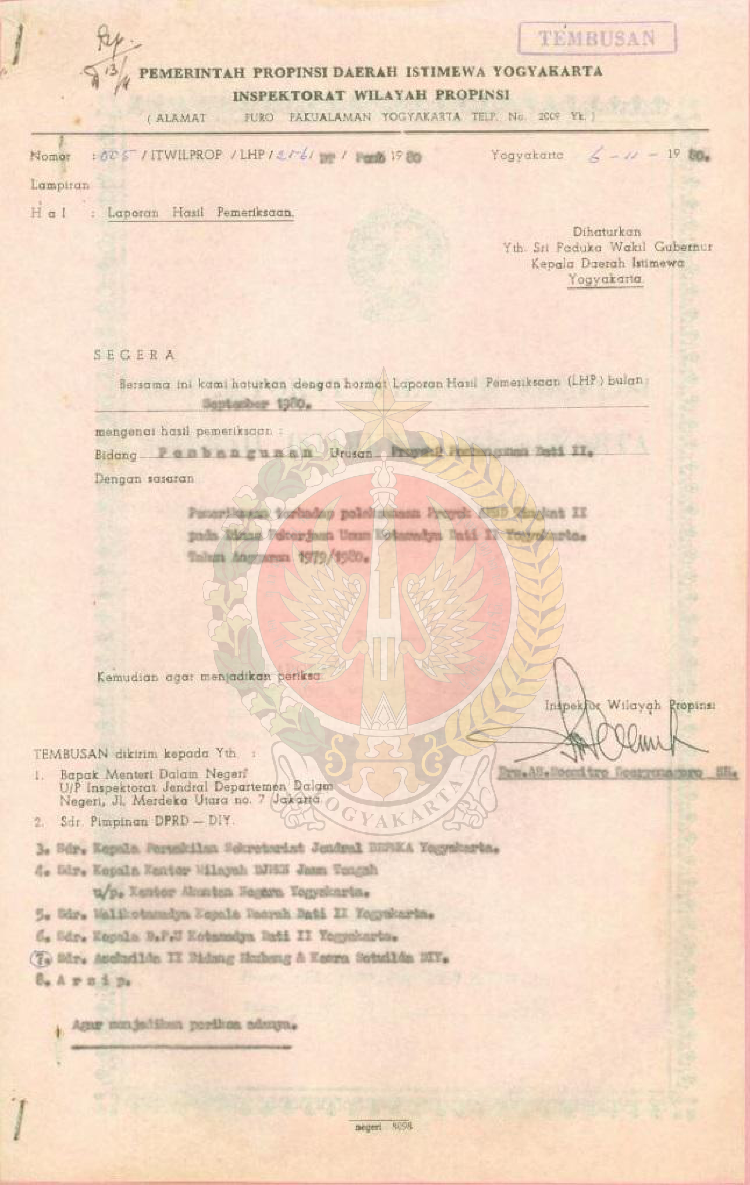 Laporan hasil pemeriksaan proyek pembangunan Kotamadya Yogyakarta.