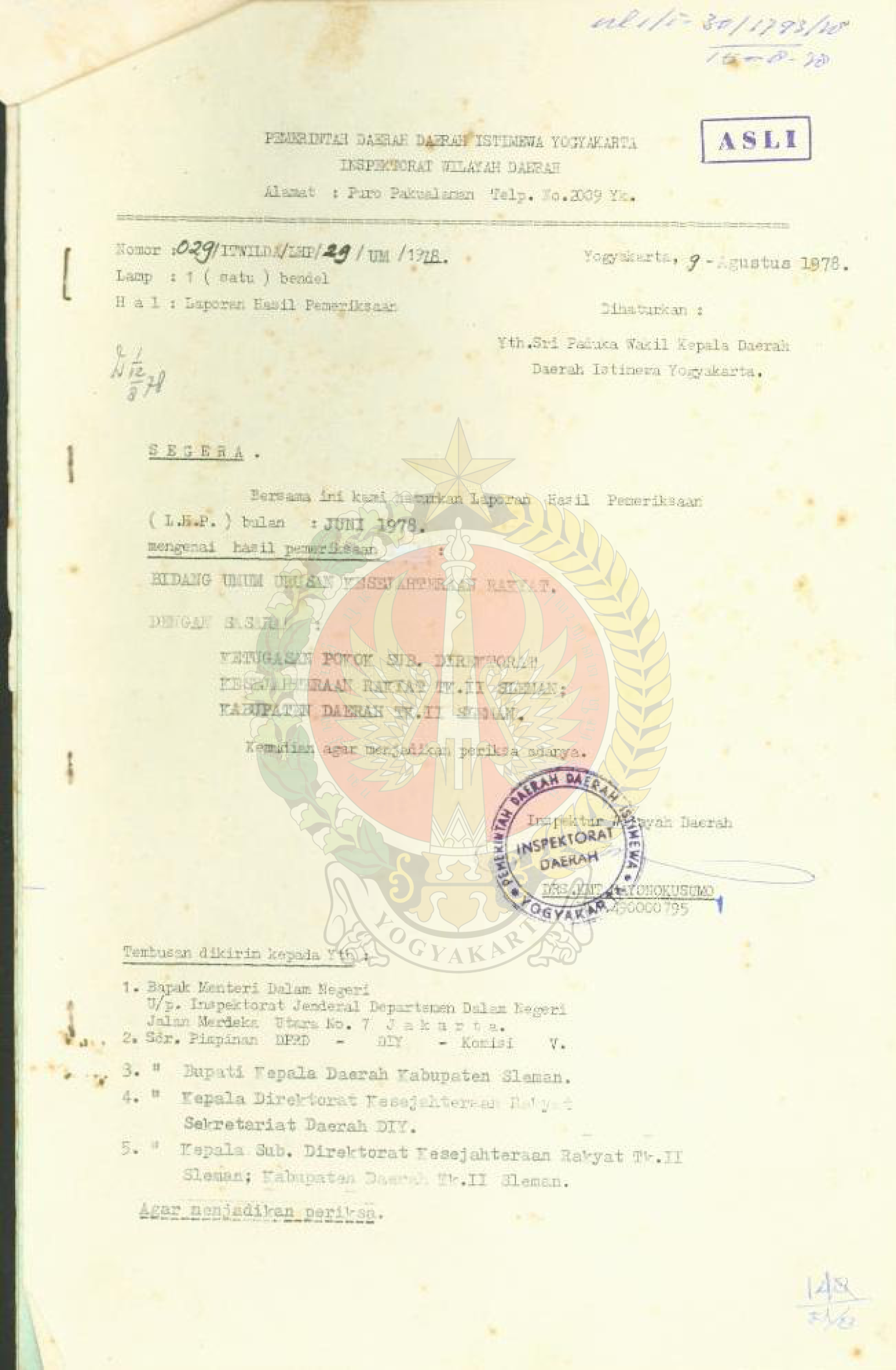 Laporan hasil pemeriksaan Pelita Nasional Depdagri pada Selapuda DIY 1977/1978.