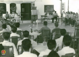 Kepala Djawatan Penerangan sedang memberi penjelasan tentang Irian Barat dan perjuangan pemerintah dalam Pekan Irian Barat di Donoharjo, Kapa-newon Ngaglik.