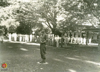 Komandan Pasukan P.K.D sedang memberikan laporan.