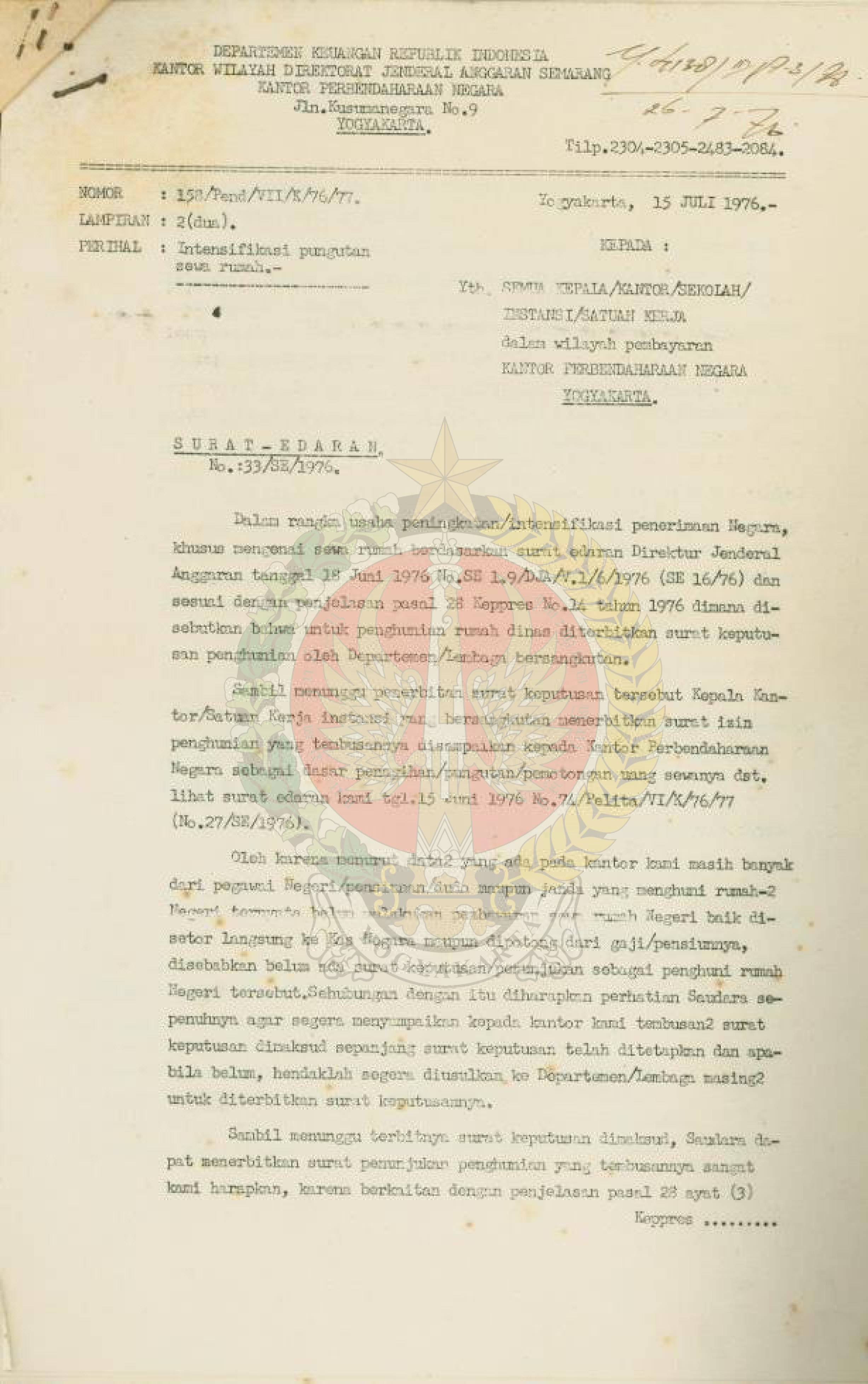 Intensifikasi pungutan sewa rumah Kantor Perbendaharaan Negara Prop. DIY.