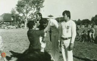 Juara lomba panahan kelompok putra menerima medali dari Marsekal Udara Suwoto