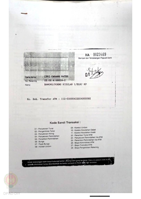 lembar Pengendalian dan Verifikasi Dokumen Administrasi Pencairan Bantuan Rehabilitasi dan Rekonstruksi Rumah, Nama Kelompok Klebaan dan Mentobayan, Kel/Desa Salamrejo, Kecamatan Sentolo, Kabupaten Kulon Progo, Propinsi Daerah Istimewa Yogyakarta. |