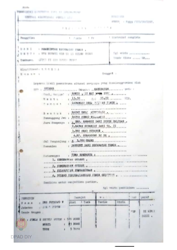 Surat Telegram dari Wakil Gubernur DIY No. 070/651 kepada Bupati/Walikota se-DIY tentang Perintah kepada para Bupati / Walikota untuk mengadakan Pusat Pengendalian Gangguan Sosial dalam rangka pelaksanaan Kampanye Pemilu 1987.