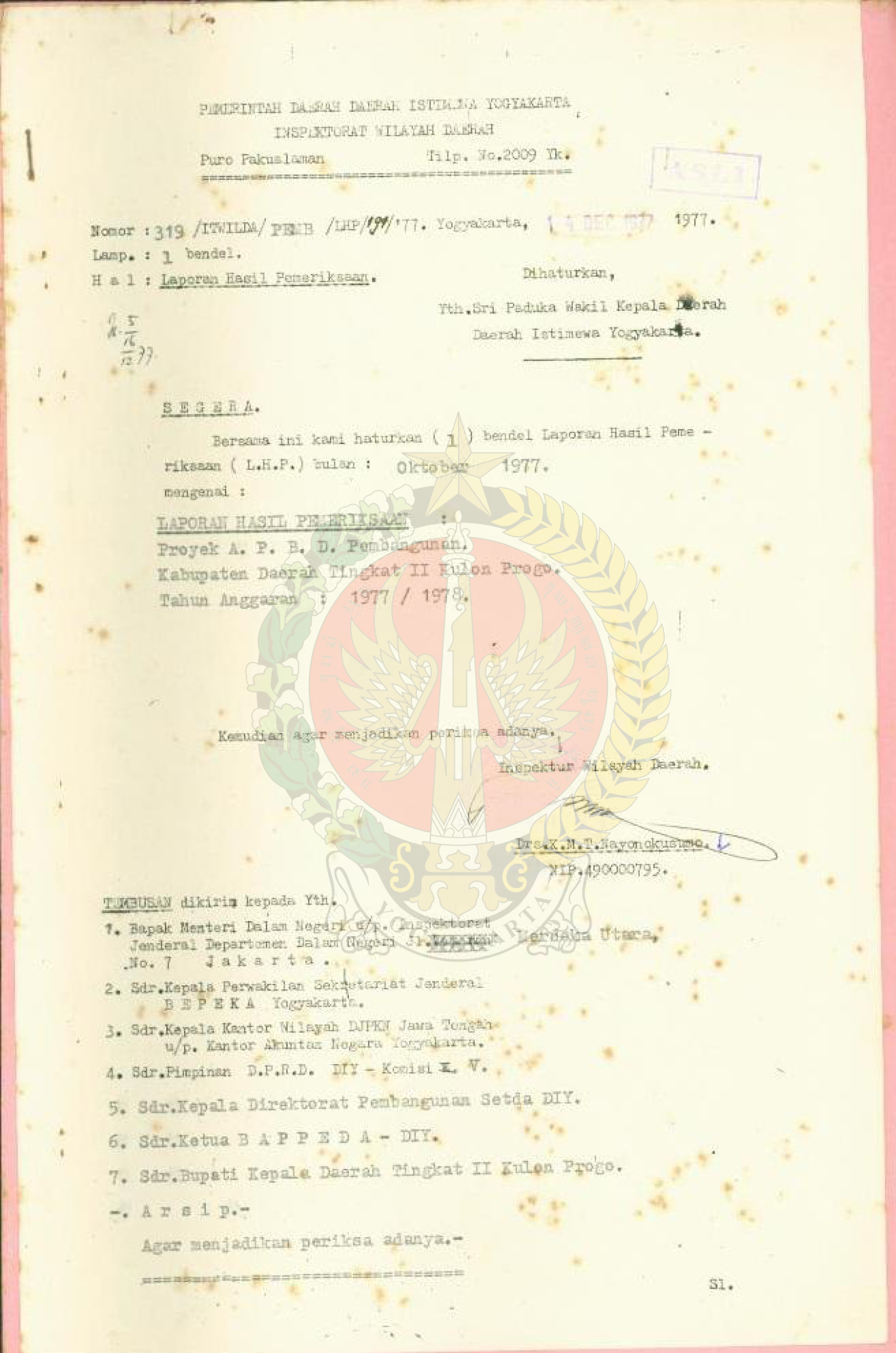 Laporan hasil pemeriksaan bulan Oktober 1977 pada proyek pembangunan Dati II Kulon Progo.