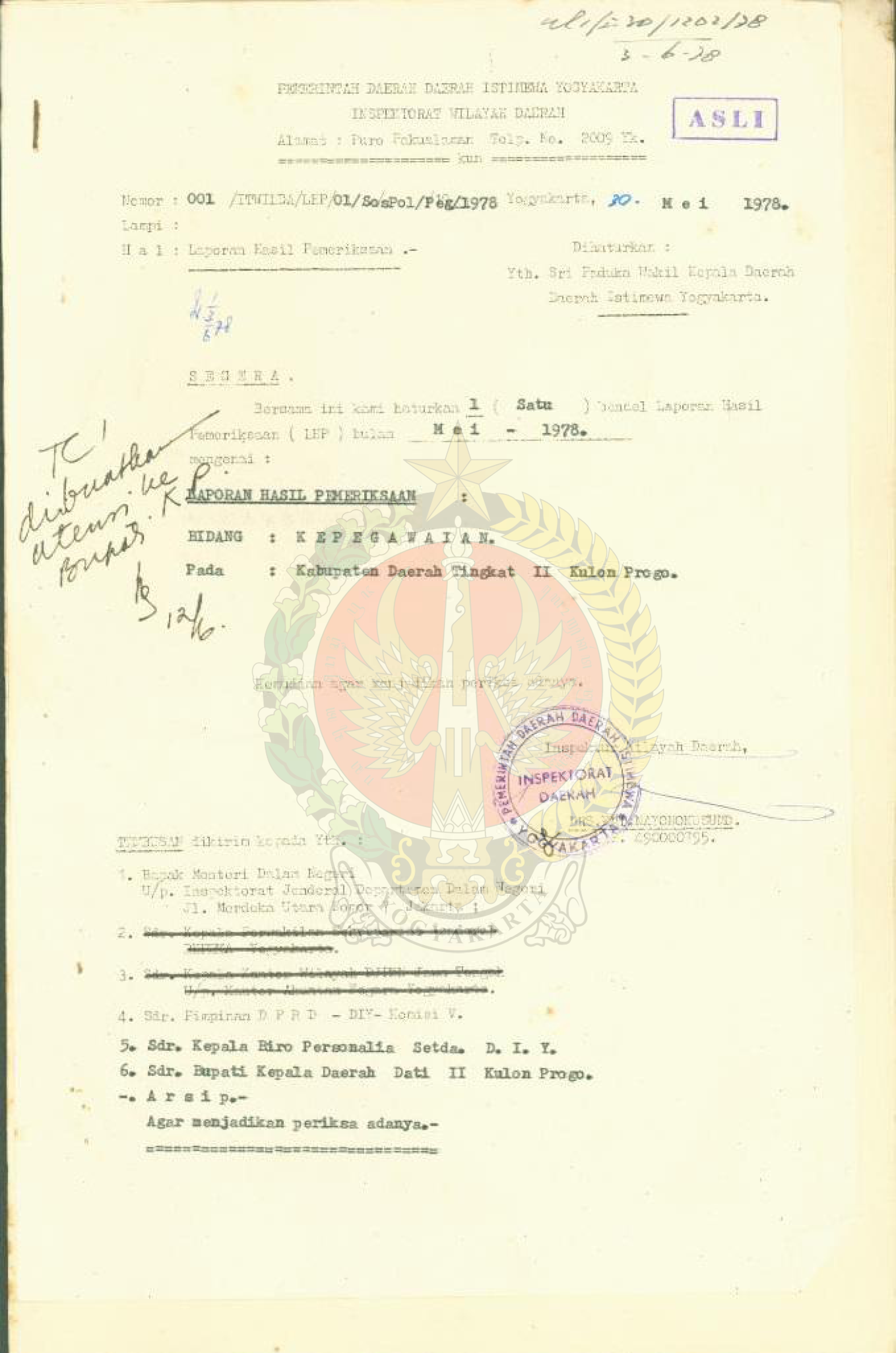 Laporan hasil pemeriksaan Kab. Bantul dan Kulon Progo.