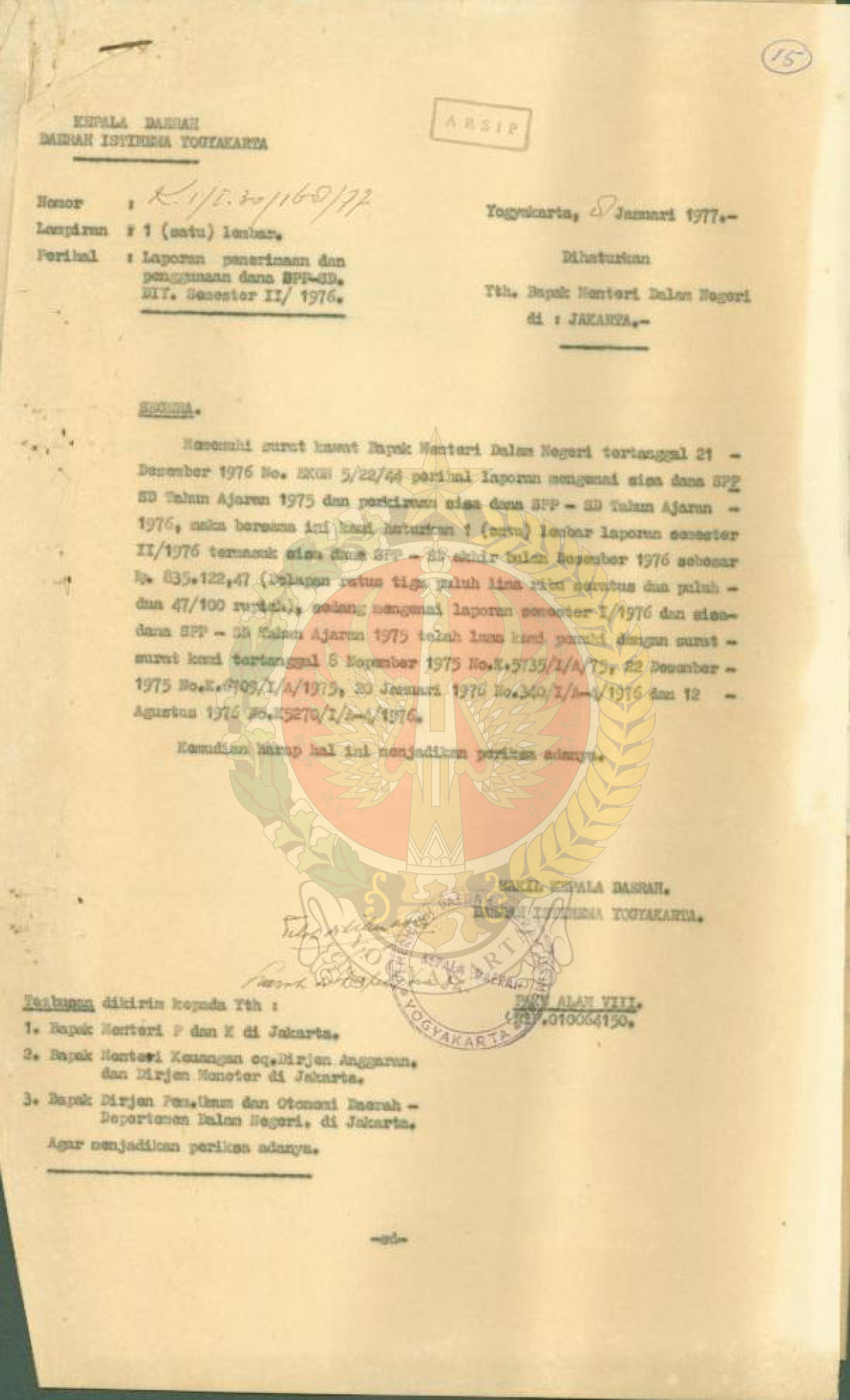 Laporan hasil pemeriksaan pada Dana – SD DIY semester II/1976.
