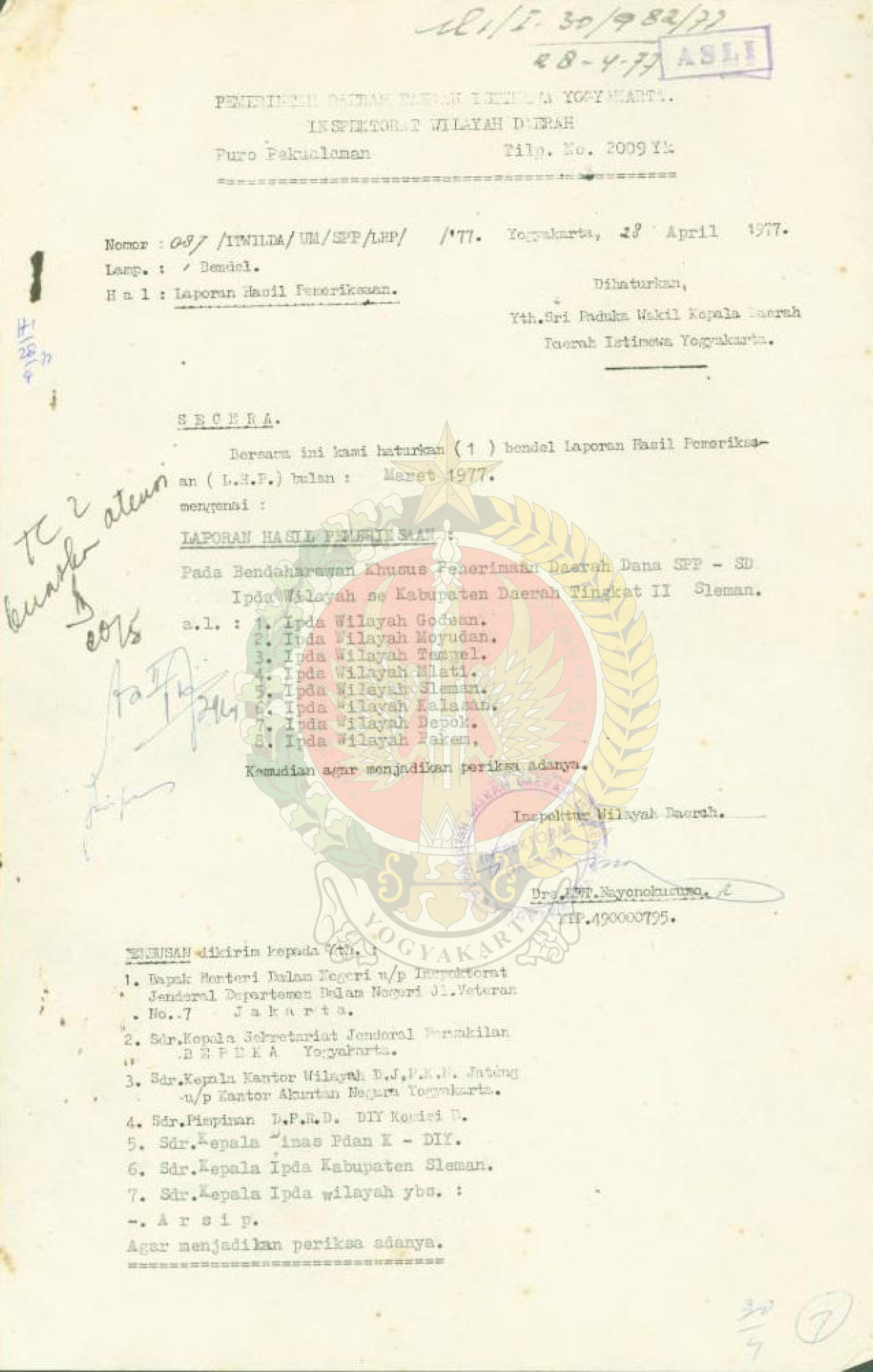 Laporan hasil pemeriksaan pada Dana – SD se Ipdawil Kab. Sleman.