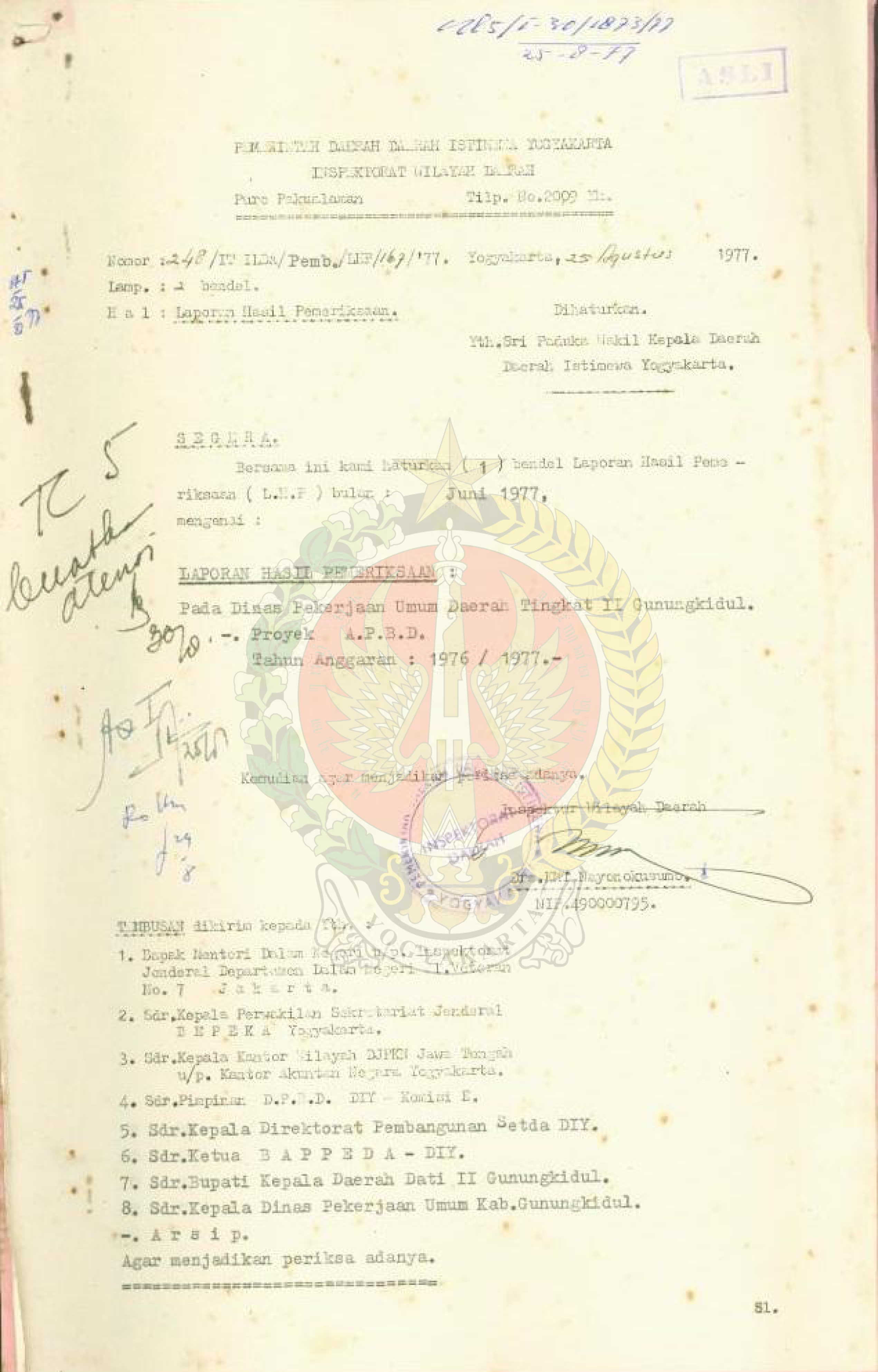 Laporan hasil pemeriksaan proyek pada Dinas Pekerjaan Umum Kab. Gunungkidul.