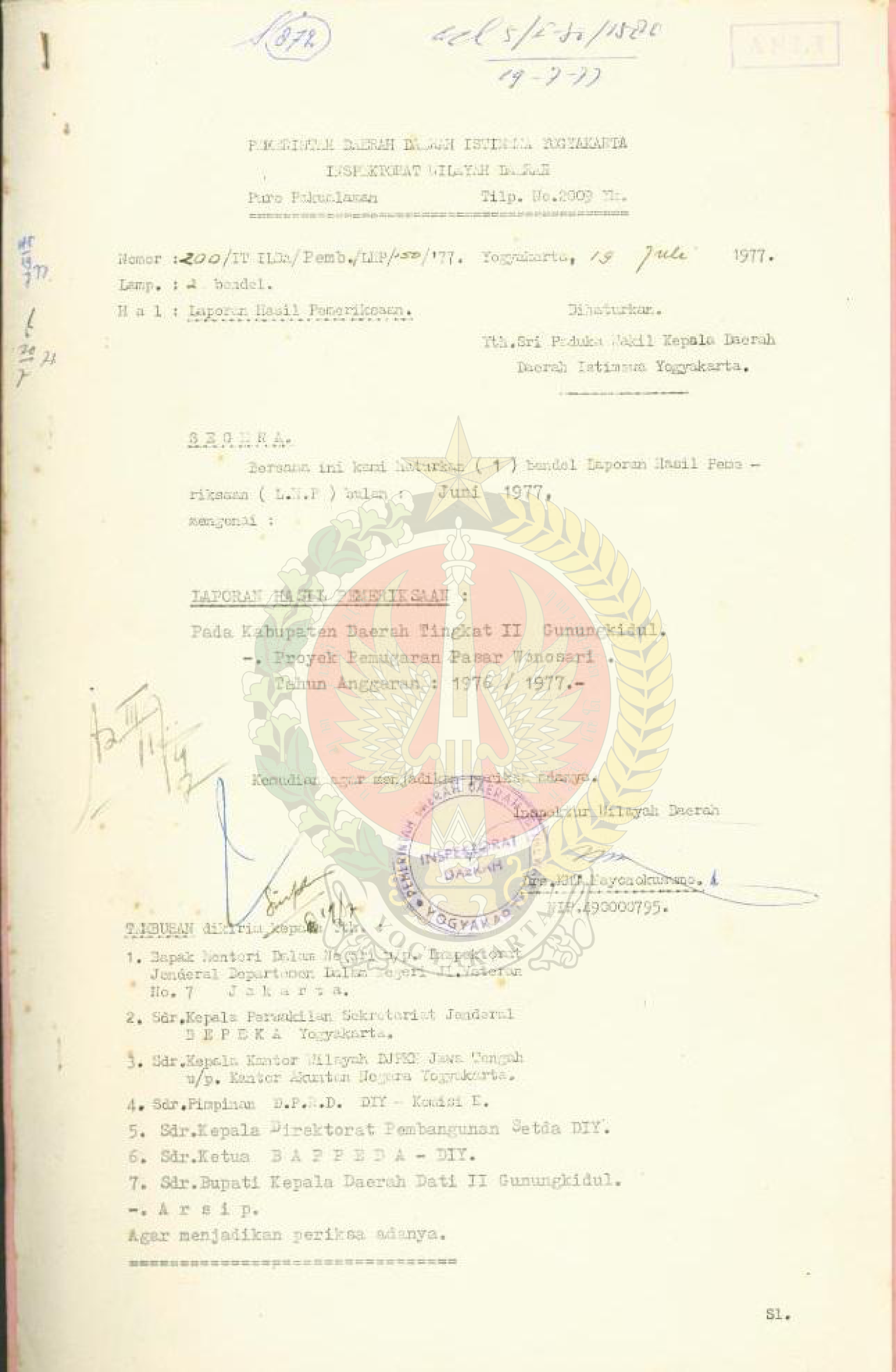 Laporan hasil pemeriksaan proyek pemugaran Pasar Wonosari GK.