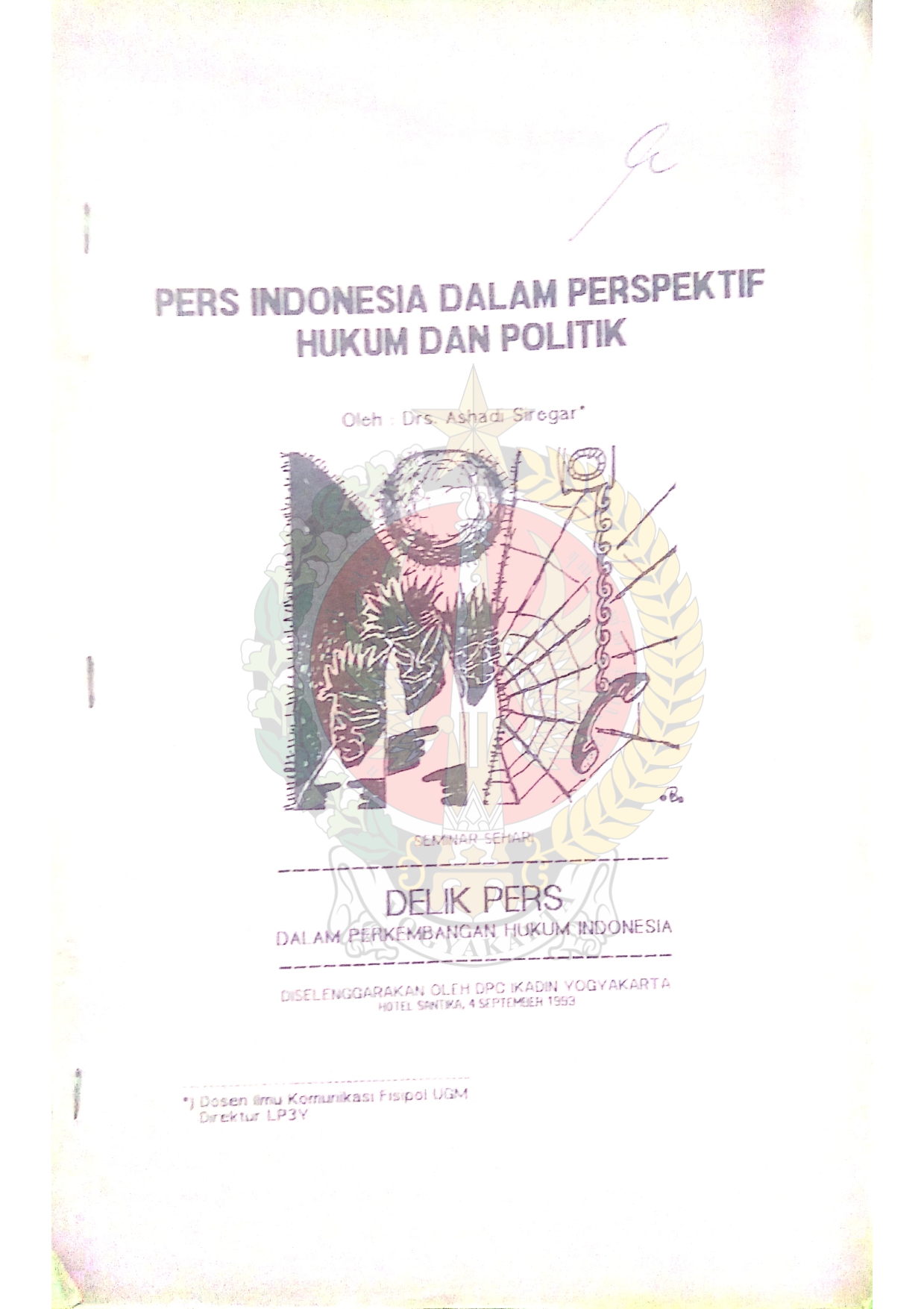 Makalah-makalah yang disampaikan dalam semiar sehari Delik Pers dalam Perkembangan Hukum Indonesia diselenggarakan oleh DPC IKADIN Yogyakarta di Hotel Santika pada 4 September 1993.