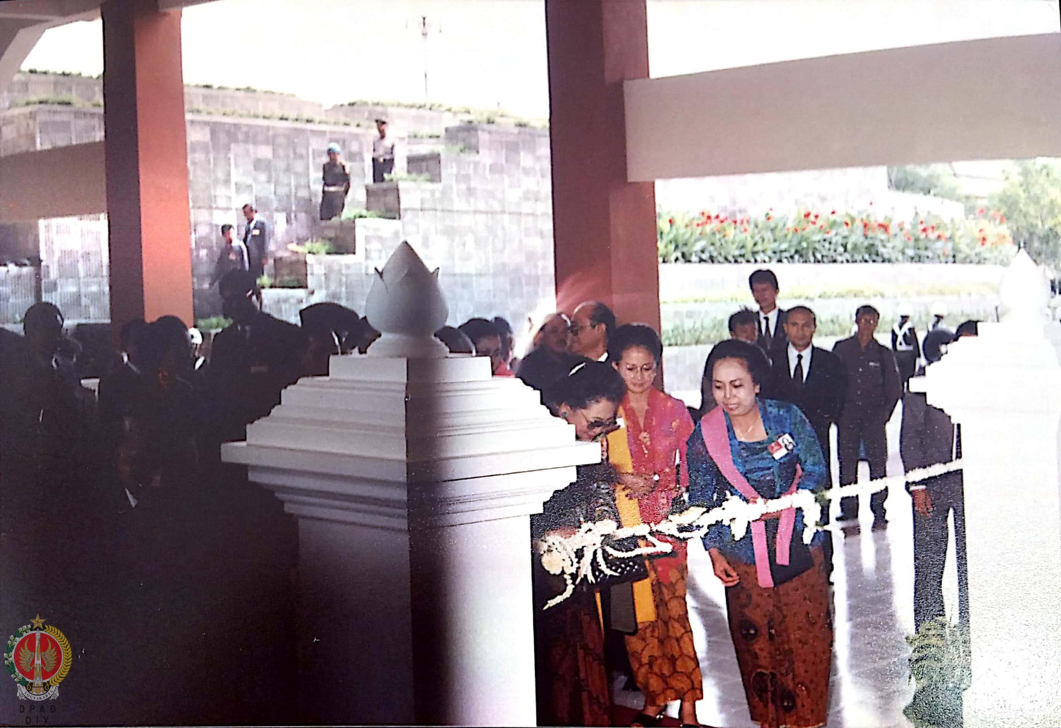 Pengguntingan pita oleh istri Presiden Tien Soeharto tanda dipergunakannya Gedung Auditorium