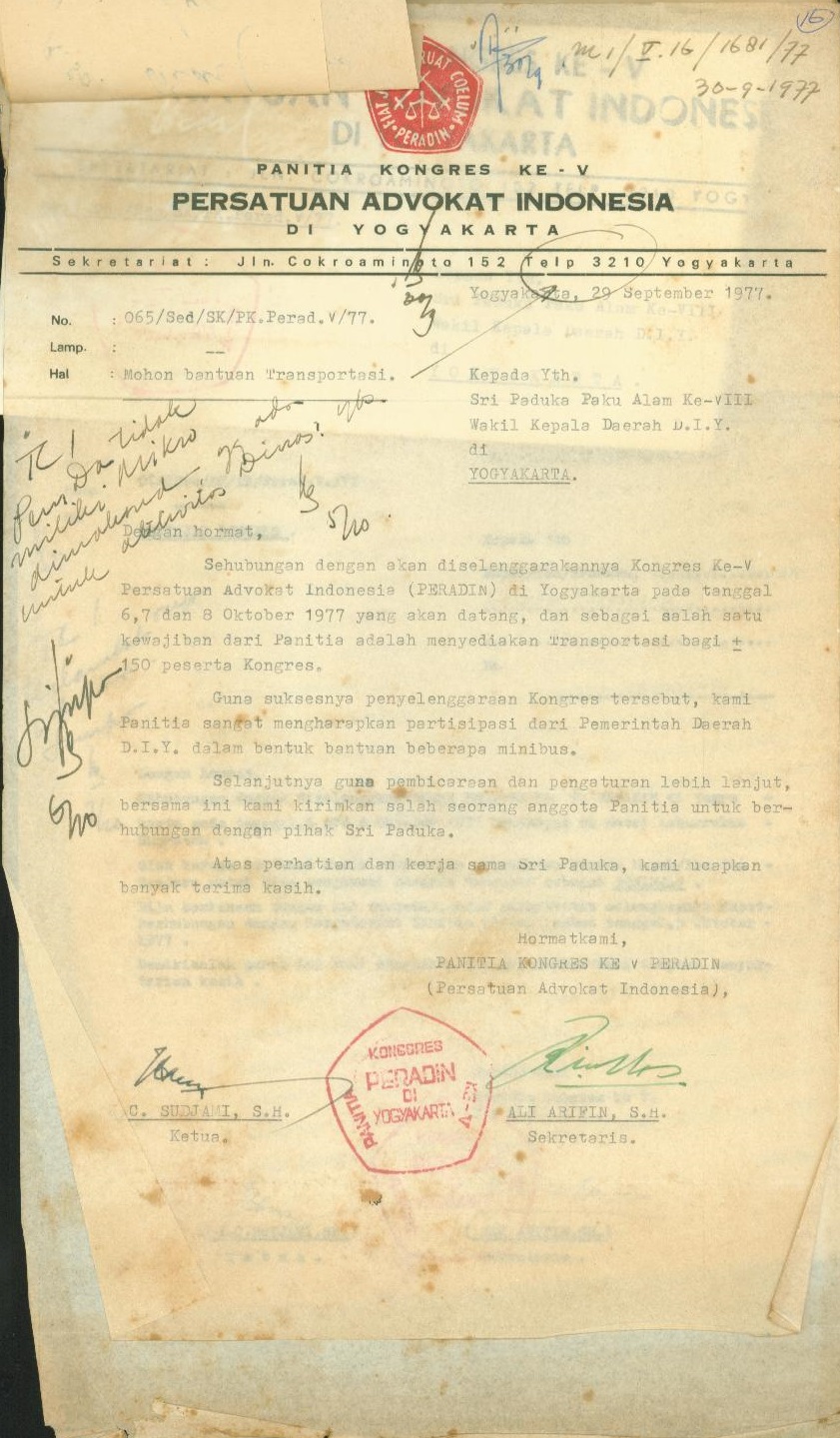 Penyelenggaraan konggres Advokat Indonesia V di Yogyakarta (Peradin)