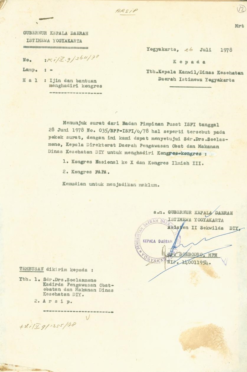Permohonan ijin a.n. Sdr. Drs. Soelasmono pada konggres Nasional X dan konggres III