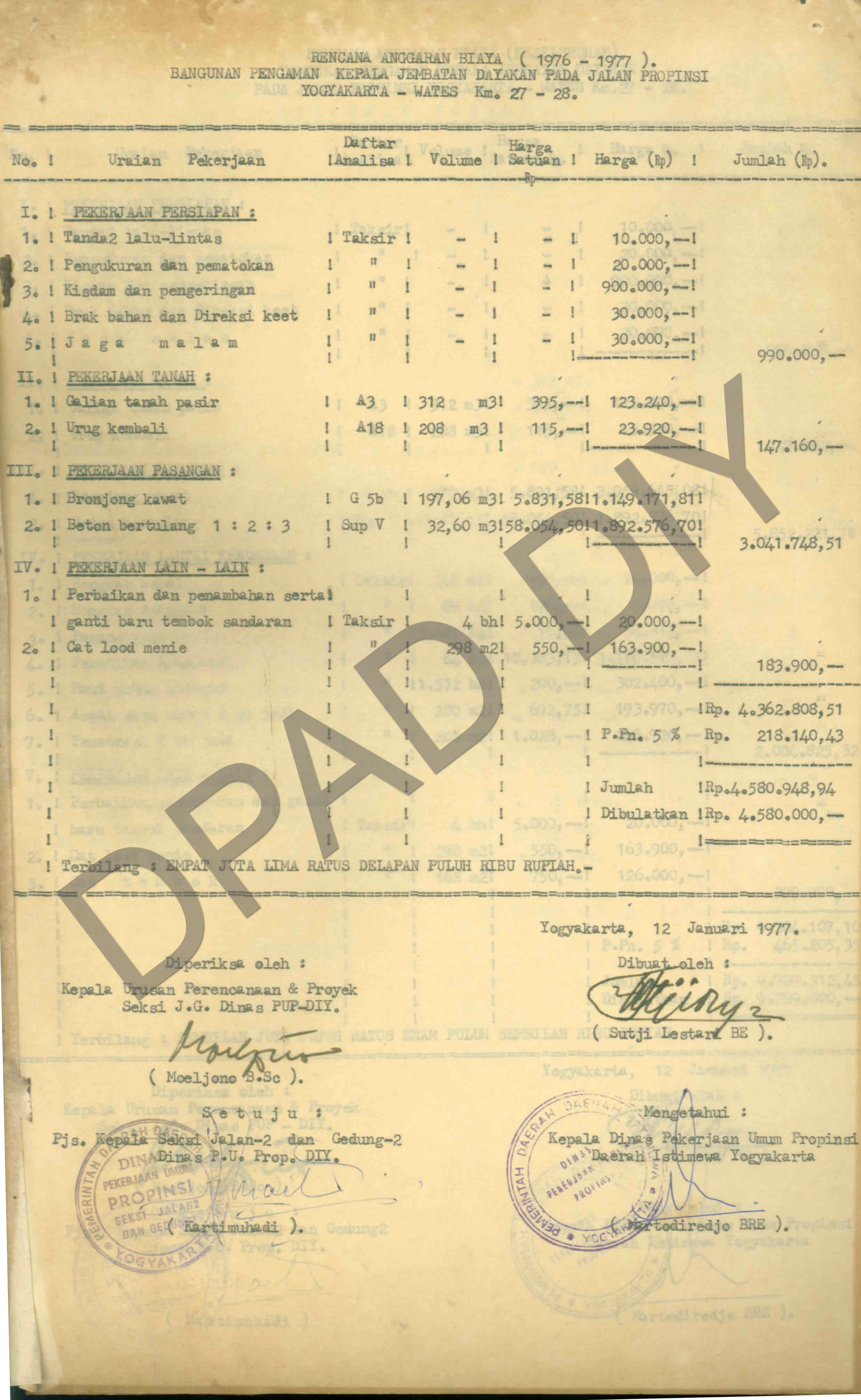 Rencana Anggaran Biaya Bangunan Pengaman Kepala Jembatan Dayakan pada Jalan Provinsi Yogyakarta – Wates km 27-28