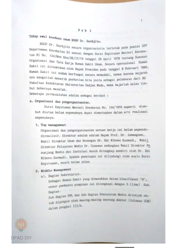 Memorandum Direktur RSUP Dr. Sardjito masa bakti 14 Pebruari 1983 – 31 Maret 1988 dalam rangka Serah Terima Jabatan Direktur RSUP Dr. Sardjito