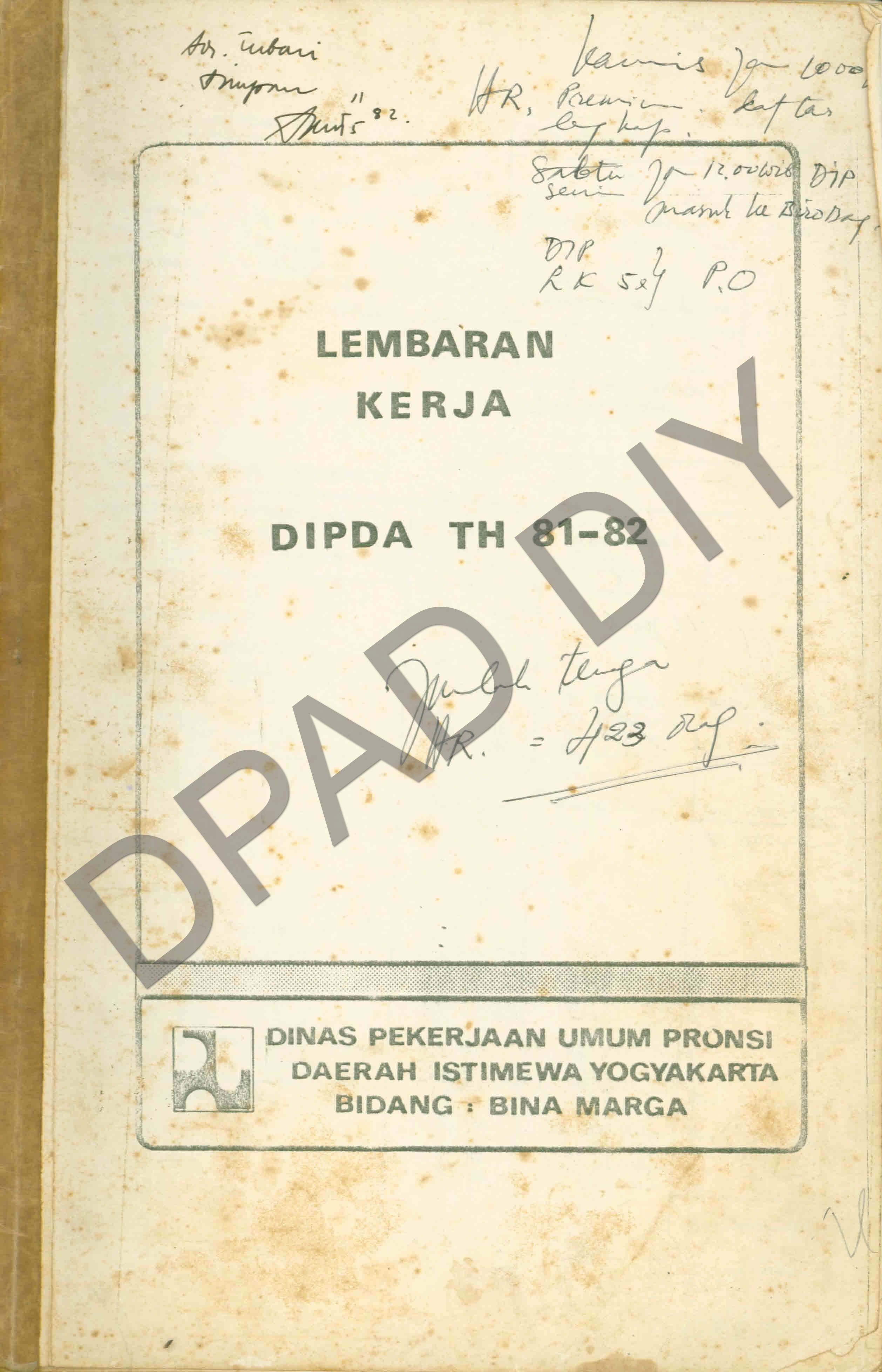 Surat dari Dinas Pekerjaan Umum DIY Bidang Bina Marga perihal Lembaran Kerja DIPDA Tahun 1981-1982.
