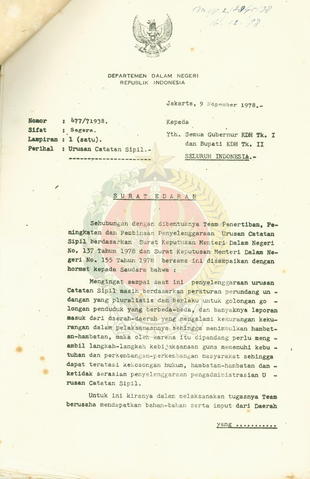 Surat Edaran Mendagri tentang penyelenggaraan urusan catatan sipil