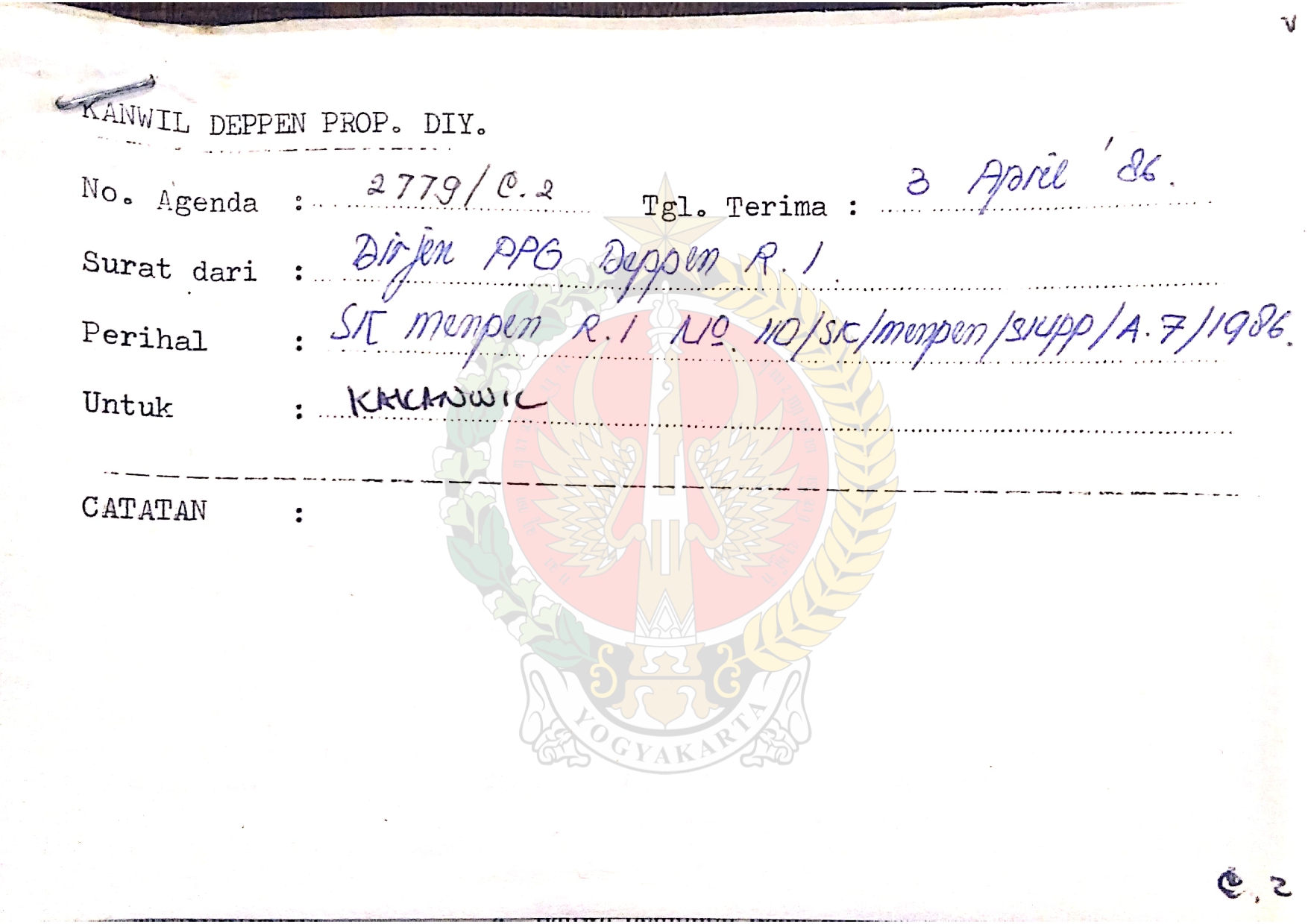 Surat dari Direktur PT. Wartaindo Sukma Nusantara kepada Kepala Kantor wilayah Departemen Penerangan Daerah Istimewa Yogyakarta perihal permohonan rekomendasi untuk memperoleh Surat Izin Usaha Penerbitan Pers dari pemerintah dalam penerbitan Surat Kabar Minggu (Sunday Newspaper) berbahasa Jawa dengan nama โBende Mataramโ.